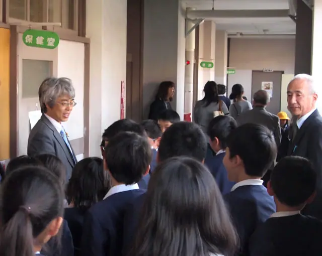 寄贈式が終わって子供達と握手